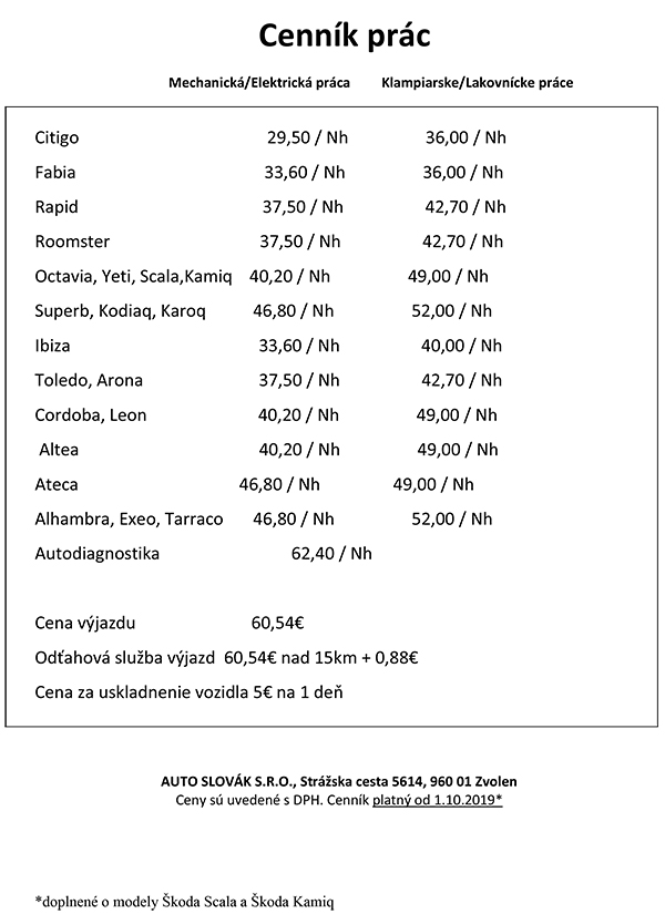 - opravy automobilov zn. ŠKODA a SEAT, taktiež aj ostatné značky